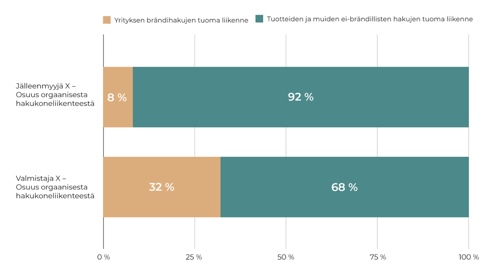 - Valmistajilla brändihakusanat muodostavat merkittävän osan hakukoneliikenteestä.